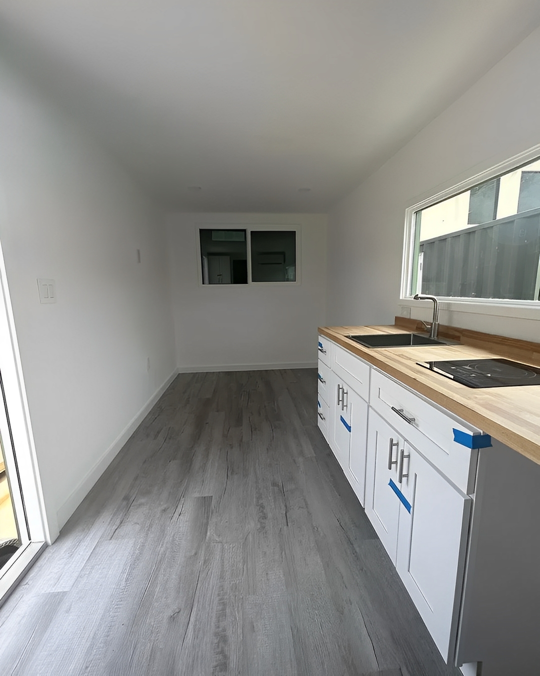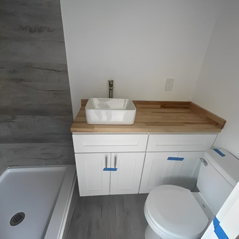 • Kochfeld, Spüle, Wasserleitungen, Stauraum unter der Arbeitsplatte