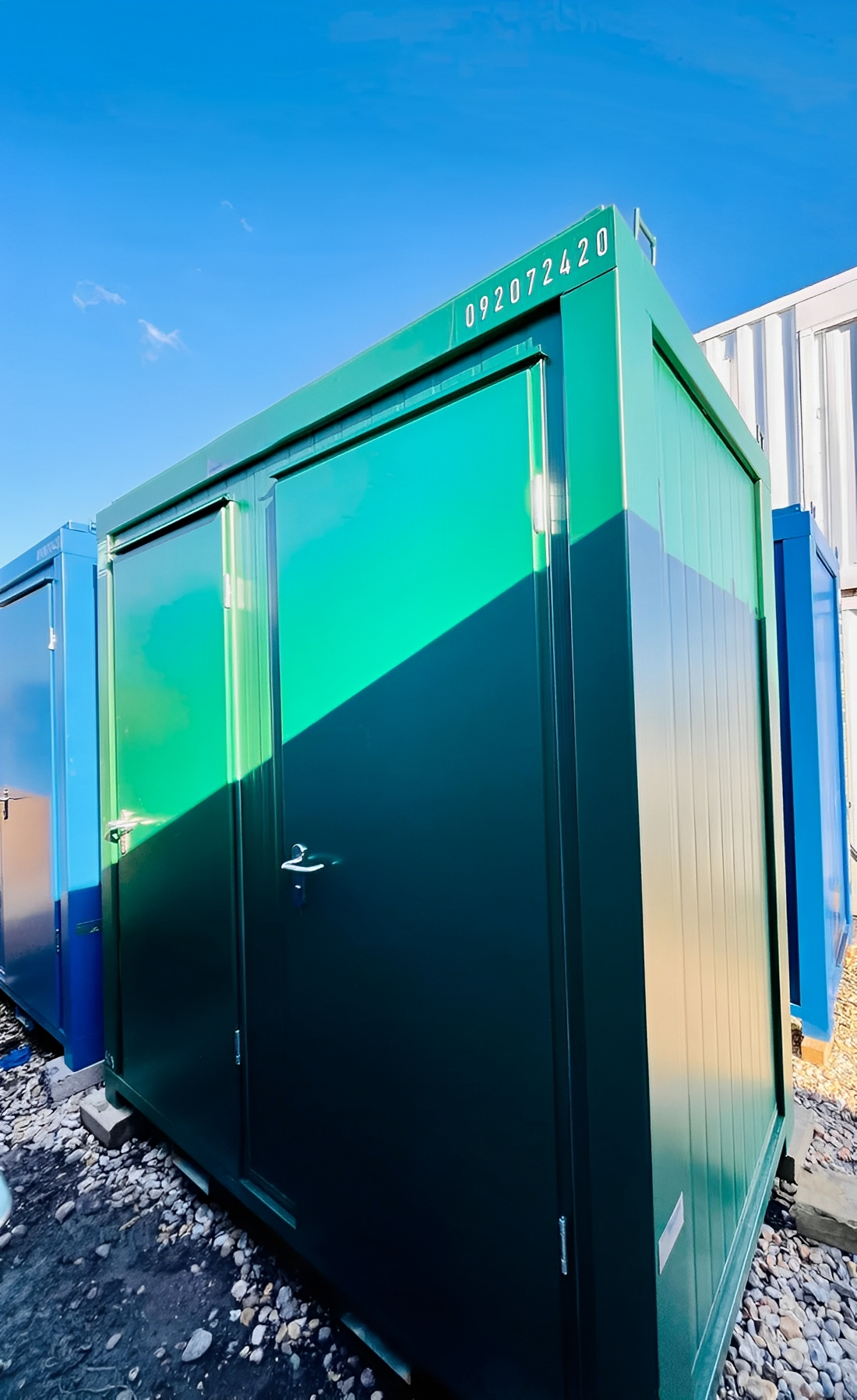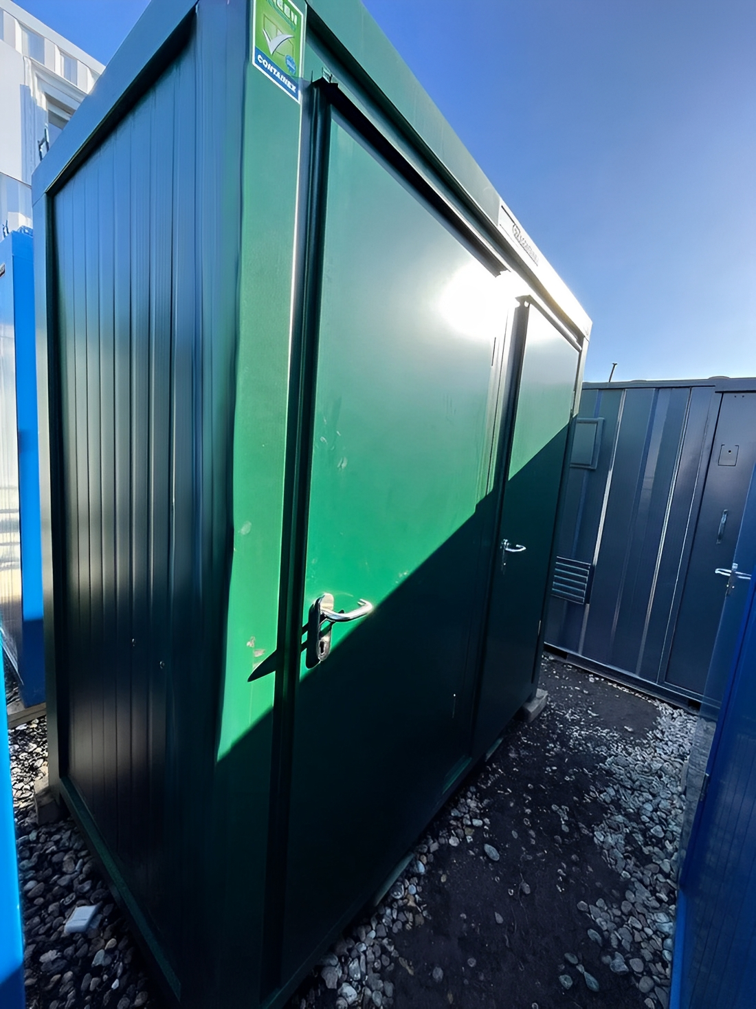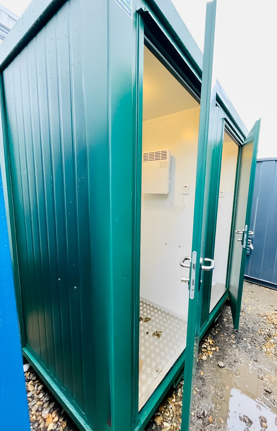 Verzinktes Stahlblech, beidseitig beschichtet, sowie die Wärme- und Schalldämmung der Wände aus PU-Schaum und die zementgebundene Spanplattenbodenplatte garantieren eine extrem lange Lebensdauer. Die Gebäude sind komplett ausgestattet und sofort einsatzbereit.