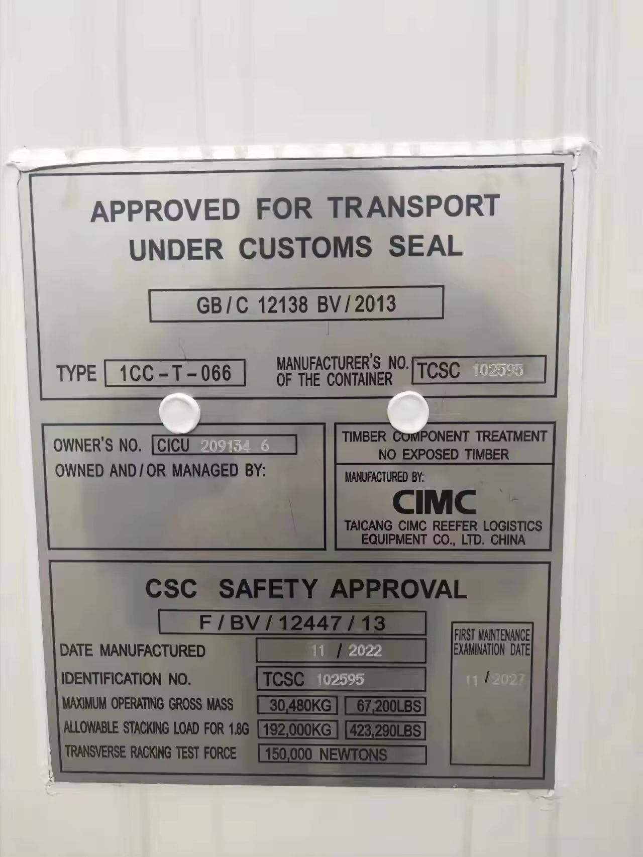 | Behältergröße | 20 Fuß (Standard) |