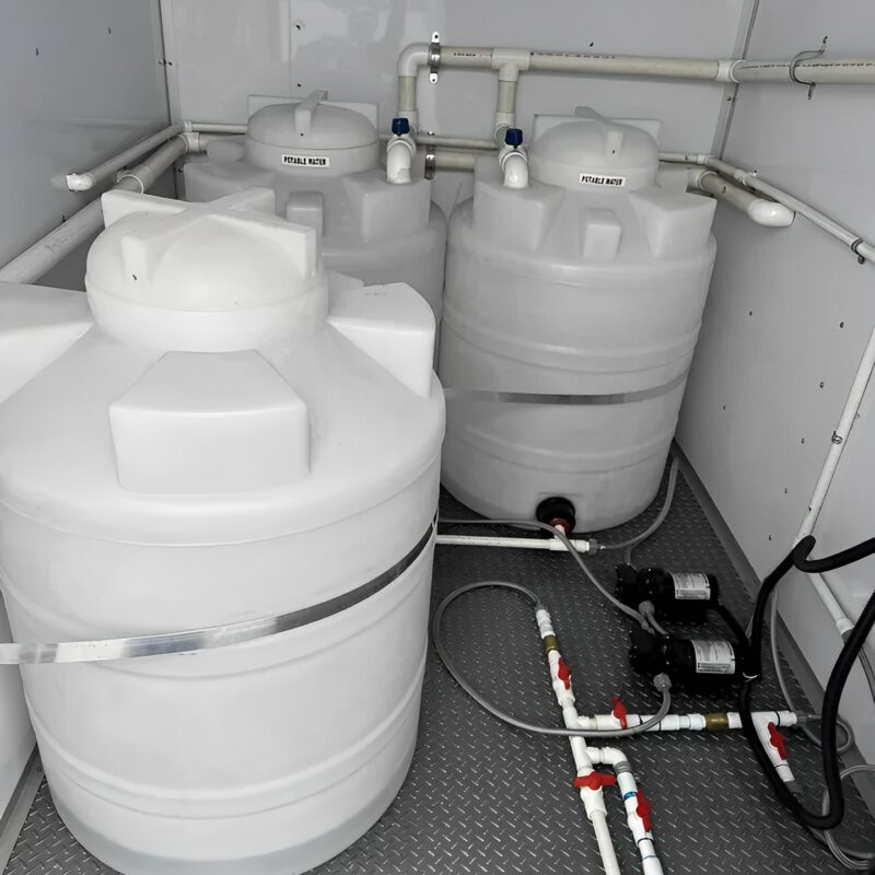 High-Capacity Water System – Features (2) 53-gallon freshwater tanks, (1) 53-gallon grey water tank, and (2) 48-gallon waste tanks for extended use.