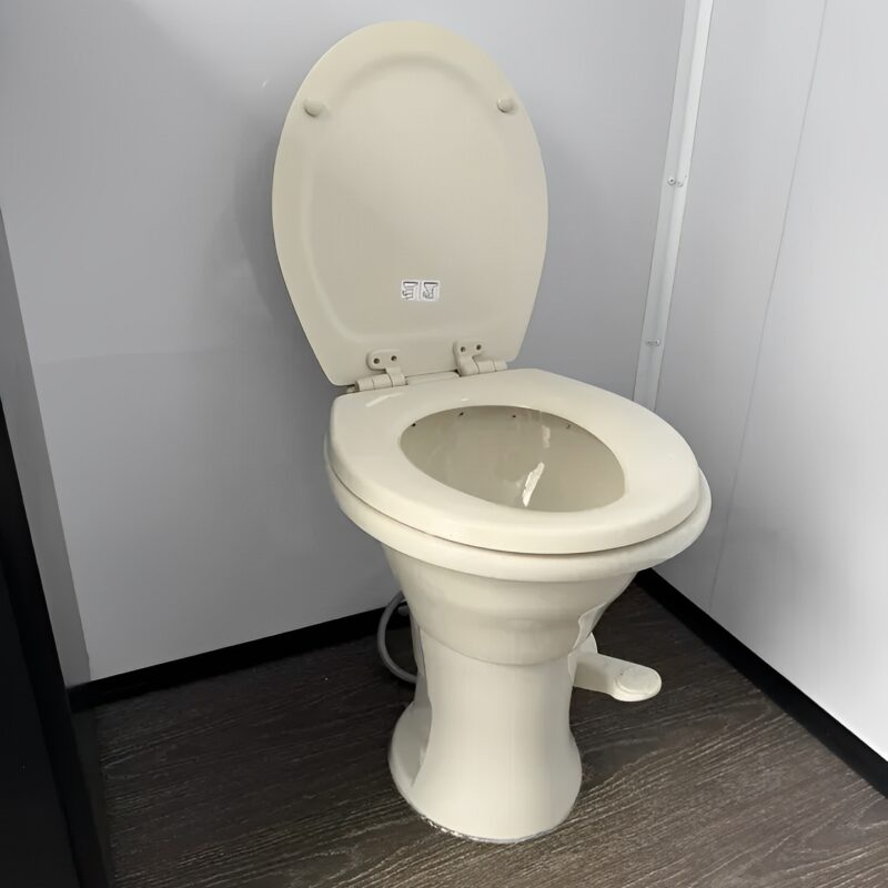 Two Private Restroom Stations – Each with an RV toilet, handwashing sink, and cabinet for storage.